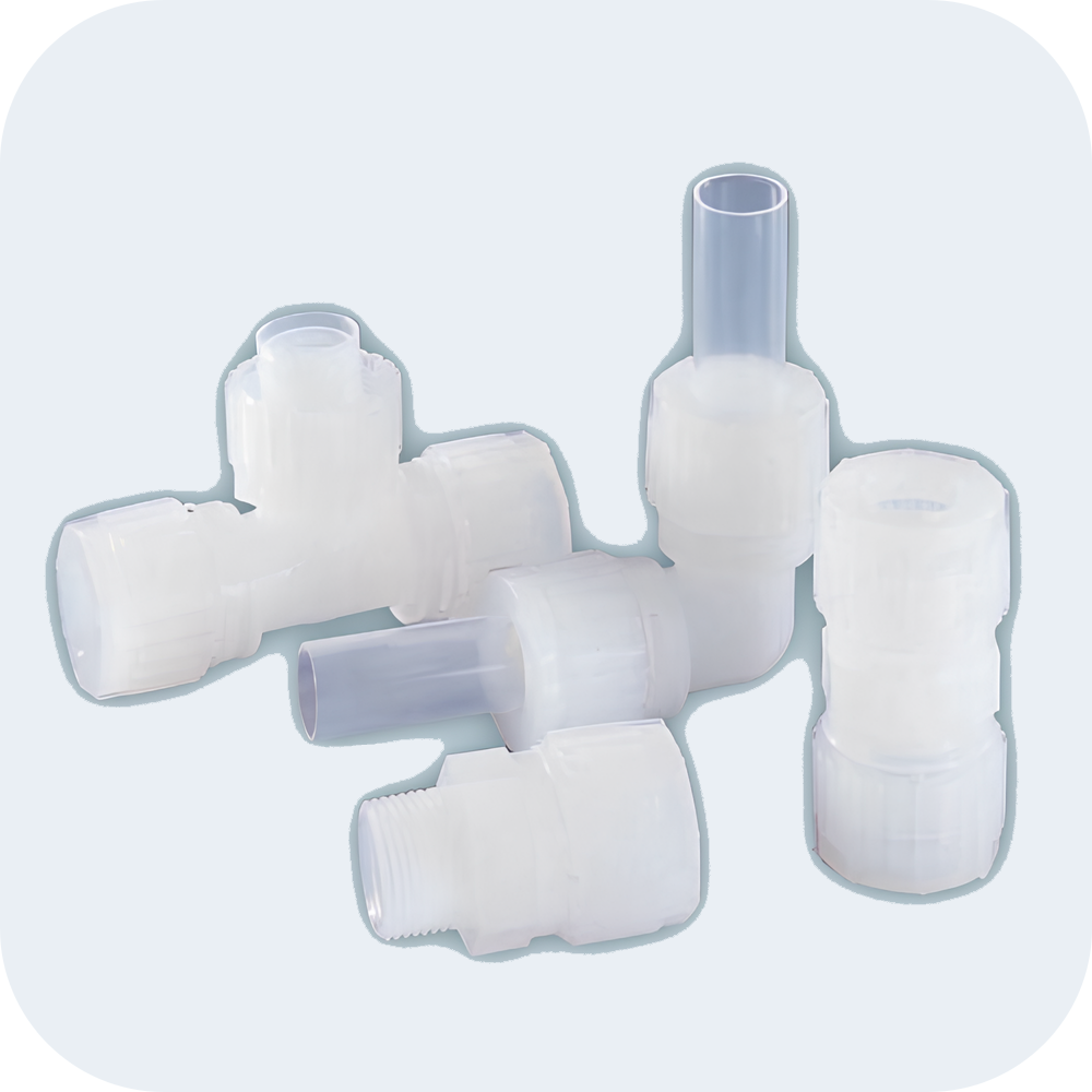 我們專注于高科技市場,特別是半導體、液晶和醫(yī)療領(lǐng)域。 主要提供耐化學腐蝕、耐熱和清潔的氟樹脂接頭、管件和泵。由于氟樹脂產(chǎn)品不受各種化學溶液的影響并且密封性強,被用于半導體晶圓清洗設(shè)備以及其他化學藥劑的運輸及循環(huán)設(shè)備。